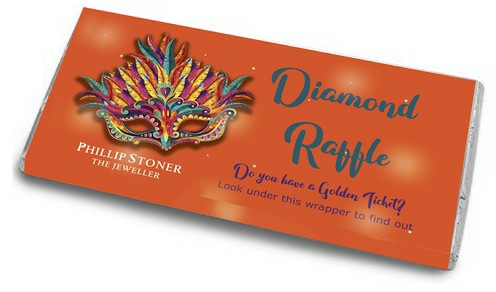 100g size bars are our most popular large bar, and a perfect sharing bar, the promotional and advertising use of these bars are practically unlimited, they are extremely popular for including golden tickets and discount vouchers inside. These bars are used by many companies and organisations as a standout promotional tool, the larger size means they are capable of holding anything from a simple logo to a full blown advert, and have ample room for you to advertise and promote your company or product whilst offering a good return on investment.