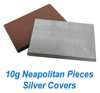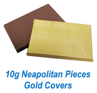 10g size milk chocolate Neapolitans, this size bar is perfect for producing bespoke favours for any event, these are also often purchased by many clients who personalise them as chocolate business cards.
