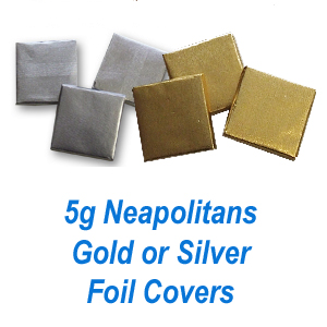 Supplied with no paper band to allow for self personalising and branding. Available in milk or Dark chocolate with a choice of gold or silver inner foil covers. Available in packs of 100 Neapolitans per pack.